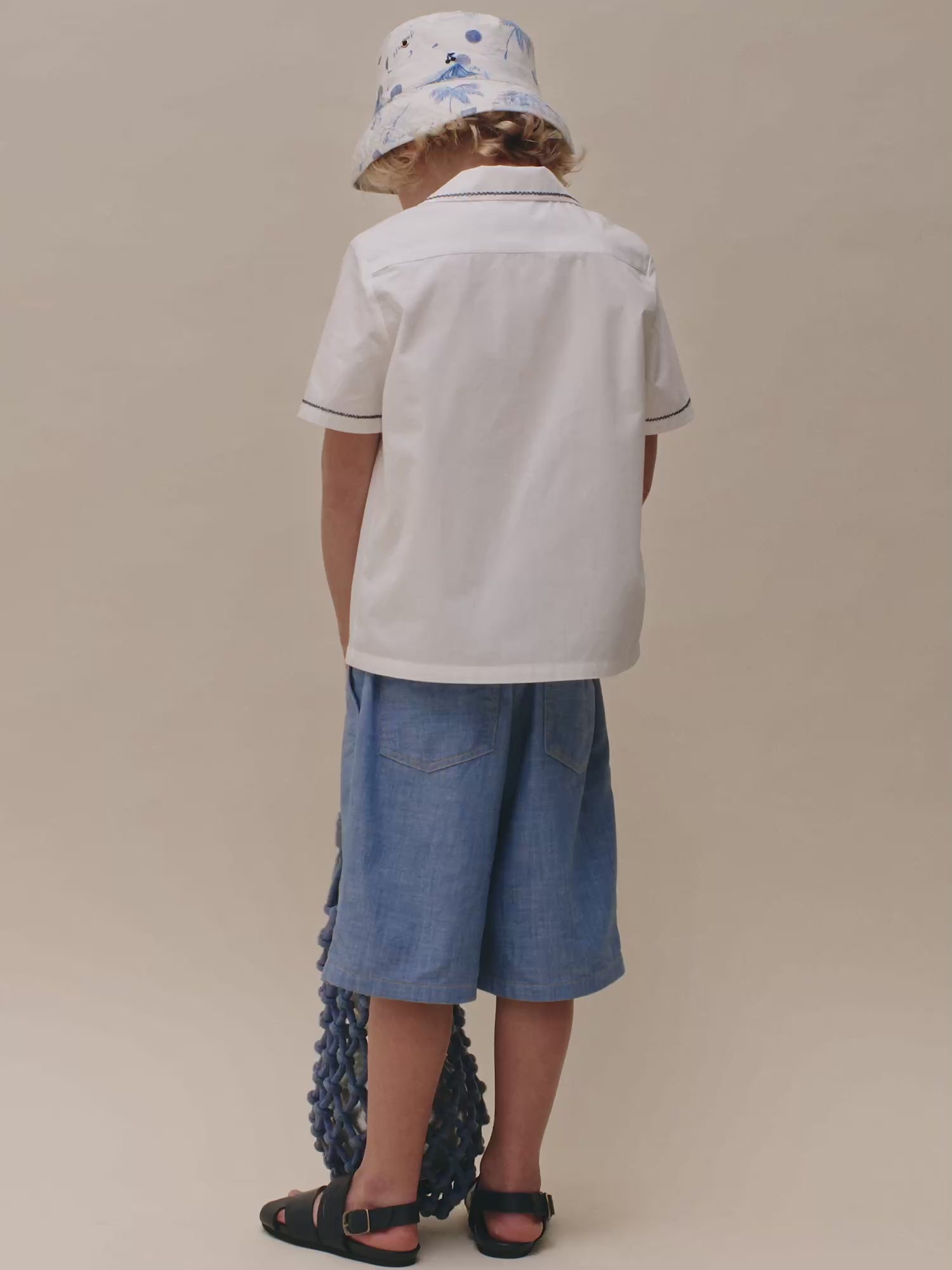 This Steve shirt invites boys to relax with its palm trees embroidered on the front. Made in cotton poplin from organic farming, it keeps its shape throughout the day. Its loose, straight fit adds to its comfort. It features contrasting decorative stitching on the collar and cuffs.
